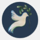 Pegatina Redonda Paz en la Tierra, paloma de esperanza