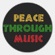 Las letras amarillas, verdes y rojas deletrean "Paz a través de la música". Gran mensaje antibélico para difundir en el lenguaje universal que es la música. Después de todo, fue Rock and Roll el que derribó la pared y no los políticos resbaladizos.
