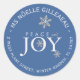 Pegatina Redonda PEACE and JOY Snowflakes Sky Blue