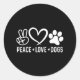 Pegatina Redonda Peace Love Dogs Design Mascota Dog Mom Dad Animal
