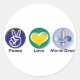 Pegatina Redonda Peace Love Mardi Gras