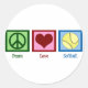 Pegatina Redonda Peace Love Sofball