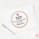Si estás buscando una manera colorida, quizás única y dulce de agradecer a los clientes por su compra, puedes apreciar este divertido retro inspirado en Peach "Yay! ¡Tu compra ha hecho nuestro día!" (Con el corazón) Negocios Gracias Pegatina de Ronda Clásica de Zazzle! Disponible en hojas pequeñas de 20 y grandes de 6 en acabado brillante o mate. Vendidos por la hoja o en cantidades de 2-500 (hojas). Compra el texto como está o personalizar fácilmente el texto en el frente para satisfacer tus necesidades de regalos. ¡Perfecto para añadir sobres, embalajes, bolsas de regalo y más! Ahorre cuando compre más - sin mínimos. Garantía de 100% de satisfacción.