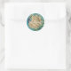 Pegatina Redonda Peacock Feathers Turquoise Blue Purpurina