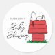 Añada un toque de juego a su ducha de bebé con el Pegatina redondo Baby Shower Classic Dog House Peanuts Snoopy. Este encantador pegatina, que cuenta con una zona de descanso en la casa de sus perros, es perfecto para decorar los favores de la fiesta, las invitaciones o las bolsas de oro en la ducha de su bebé con temática de cacahuetes. ¡Que Snoopy traiga alegría y encanto extra a su celebración!