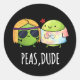 Pegatina Redonda Peas Dude Funny Hippie Pea Pun Dark BG