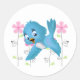 Este pegatina redondo se muestra en blanco con un pájaro pintado y flores rosas. Personalizar este artículo o compra tal cual.