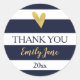 Relieve metalizado dorado Corazón Navy Bandas Azules y Blancas Pegatinas de Baby Shower. Agregue fácilmente su nombre y año personalizados.