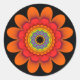 Estos pegatinas presentan un diseño floral de arte fractal con naranja, amarillo, rojo, verde, púrpura y rosa sobre un fondo negro. Se puede personalizar el color de fondo.