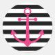 Pegatinas de rayas blancas y negras con ancla rosada.
