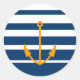 Pegatina Redonda pegatinas de ancla naranja con rayas azules y blan
