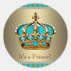 Pegatina Redonda Pegatinas de Baby Shower Turquoise Blue Gold Princ