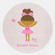 Esta pegatina redonda tiene un fondo morado con una bailarina afroamericana parada sobre su pie de amapola. Hay una mariposa y corazones a cada lado de ella. En la parte inferior, ¡puedes fácilmente personalizar tu nombre! Algunos elementos de este diseño están hechos por http://www.mygrafico.com/stockberry-studio/aff_124.html