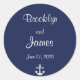 Pegatina Redonda Pegatinas De Boda Náutica Azul De La Marina Con An