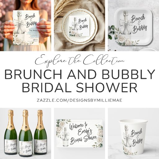 Agregue un toque de acabado pulido a los favores de su despedida de soltera con esta etiqueta de pegatina "Brunch y Burbujas" Floral Blanca Elegante. Con delicadas flores blancas, un hermoso lazo blanco, una botella de champán y una fuente de letra sofisticada, es la forma perfecta de unir su tema. Ideal para sellar sobres, decorar bolsas de favores o personalizar botellas de champán.