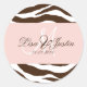 Pegatinas de boda de cebra marrón (selladores de sobre), tonos de acento rosa. Ideal para el uso diario. Personalizable completo. Las fuentes y los colores de fondo se pueden cambiar fácilmente. Copyright © 2009 PixDezines.com y PixDezines en zazzle.com