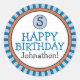 Pegatina Redonda Pegatinas de cumpleaños personalizados - azul y Na
