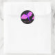 Personalizar a estos pegatinas de dragón rosado con su nombre u otro texto. Imagen de un dragón rosa y morado sobre un fondo negro.