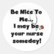 Pegatinas de profesión de enfermero con diseño de estetoscopio dice "¡Sé amable conmigo... puedo ser tu enfermera algún día!".