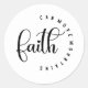 El pegatina redondo se muestra con una fe que puede mover la huella de las montañas. Personalizar este artículo o compra tal cual. Imagen con licencia