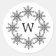 Sencillos y dulces Pegatinas Wreath Holiday con un elegante puesto de corona negra adornado con un círculo de copos de nieve de bonito. Estos encantadores pegatinas vacacionales son fáciles de personalizar con un monograma. Haga clic en "personalizar" para buscar opciones de personalización adicionales.