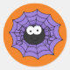 Pegatina de forma redonda mostrado con una imagen de araña de Halloween. Personalizar este artículo o compra tal cual.