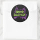 Pegatina de forma redonda mostrado en negro con una impresión de Halloween Feliz. Personalizar este artículo o compra tal cual.