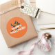 Gran pegatina redondo mostrado con una estampa festiva feliz de halloween. Personalizar este artículo o compra como está. com.