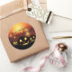 Pegatina redondo mostrado con una estampa festiva de calabazas de halloween impreso. Personalizar este artículo o compra como está. com.