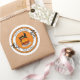 Este pegatina redondo de gran tamaño se muestra en un lindo gato negro de Halloween festivo y la huella de calabaza. Personalizar este artículo o compra tal cual.