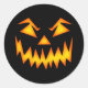 Pegatina redondo mostrado de negro con una calabaza temible de halloween impresa en la cara. Personalizar este artículo o compra como está. com.