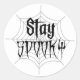 Un pequeño pegatina redondo se muestra en una impresión espeluznante de Halloween. Personalizar este artículo o compra tal cual.