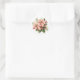 Pegatina de vacaciones mostrado con una estampación floral de poinsettia rosada festiva. Personalizar o compra como está. Imagen con licencia