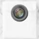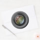 Pegatina Redonda Pegatinas de lentes de cámara. Enfoque en Jesús.