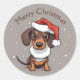 Pegatina Redonda Pegatinas de Navidad de Dachshund lindo con sombre