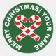 Pegatinas de Navidad redondas con corazón de caña de caramelos. Añade tu propio nombre. Pegatinas de favor personalizados, etiquetas y sellos para sobres presentes. Pequeño diseño navideño para adultos y niños (niños y chicas). Diseño neutro con color de fondo de personalizable. Diseño tipográfico para las vacaciones.