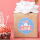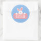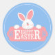 Pegatina de vacaciones de Pascua mostrado con una estampa de fiesta de Pascua. Color azul y rosa Personalizar o compra como está.
