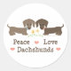 Pegatina Redonda Pegatinas de Peace Love Dachshunds