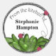 Para los enlatadores de pepinillos, este diseño muestra pepinillos con ladybugs volando alrededor de la redacción con círculo de tablero de ajedrez.