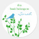 Pegatinas de libros modernos y agradables con un ilustracion de aves y ramas azul y verde agua de moda. Personalizado este libro pertenece a las etiquetas.