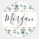 Pegatina Redonda Pegatinas del Monograma Eucalyptus Greenery Favori