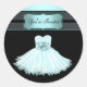 Bonito fiesta azul verde azulado vestido pegatinas de la fiesta de cumpleaños. Puede añadir el texto de su elección simplemente eligiendo el botón "Personalizar".