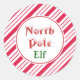 Las rayas de Candy Cane decoran estos pegatinas elfos del Polo Norte. Usar estos pegatinas festivos para Navidades, regalos, horneado, artesanías, etc...El diseño es de arte original.