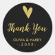 Pegatinas elegantes del favor de la boda del corazón del oro con un fondo negro clásico. El corazón del amor está en falso efecto metalizado de oro. Añada fácilmente sus nombres y año de encargo.