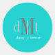 Pegatina Redonda Pegatinas en monograma azul + gráfico de Aqua Plai