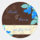 Pegatina Redonda Pegatinas - Flores florales - Marrón y azul