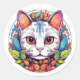 Cute gato blanco con grandes Pegatinas de ojos verdes. Pegatinas con un hermoso gato rodeado de coloridas hojas Grandes Pegatinas de Gatos divertidos para todas tus necesidades de la Artesanía. Utilícelo para celebración, amistad o reserva de recortes.