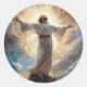 El pegatina redondo se muestra con una imagen de Jesús en su gloria. Se muestra un pequeño pegatina. Personalizar este artículo o compra tal cual. Imagen con licencia