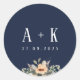 Pegatina Redonda Pegatinas, monograma elegante azul floral