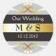 Pegatina Redonda Pegatinas Monogramas bodas - Gris y Oro